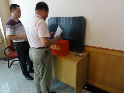 会议由党总支委员张元发同志主持,党总支黄世豪书记做本届党委的工作报告《紧密结合企业实际,切实加强党建工作》,卢彭新副书记宣读选举工作的条例,介绍了下届选举8位候选人情况,宣读上级党委对我司此次换届选举工作的批复:同意我司党总支由原4个支部改为3个支部,撤销我司党总支原第四支部,将其合并入第一党支部。接着,党员每人领到一张选票,认真选举新一届党总支成员,投上自己神圣的一票。通过现场计票唱票,得出汕头分会场的选举结果。这一结果将与深圳分会场选举后的结果合并计数票数,选举出我司新一届党总支委员。最后,杨一冰副书记发表讲话,对我司以分会场形式召开换届大会的做法和我司党建工作表示肯定。